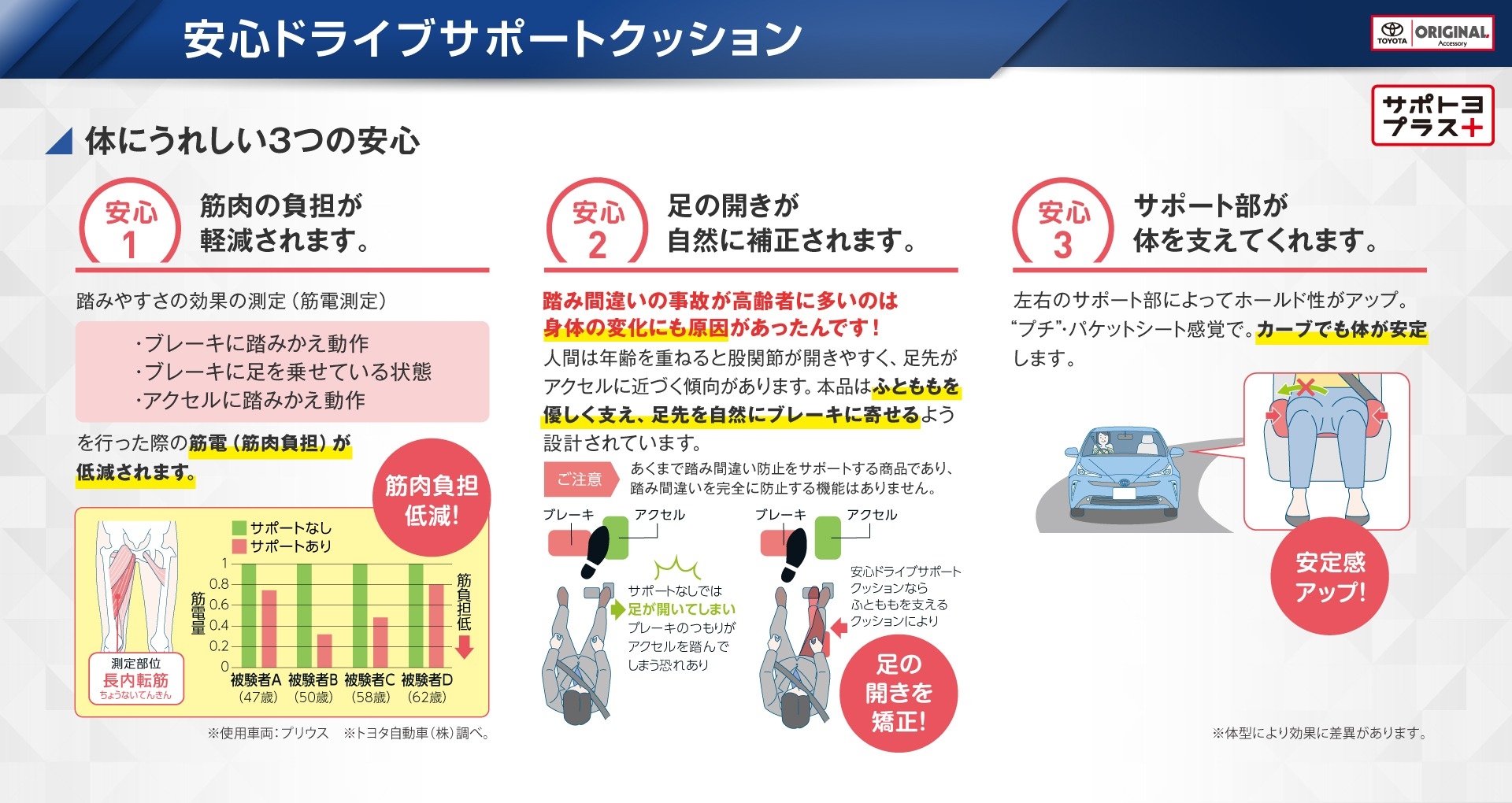安心ドライブサポートクッション、プラスサポート用スマートキーをはじめとした後付けの安全商品のご提案を、
