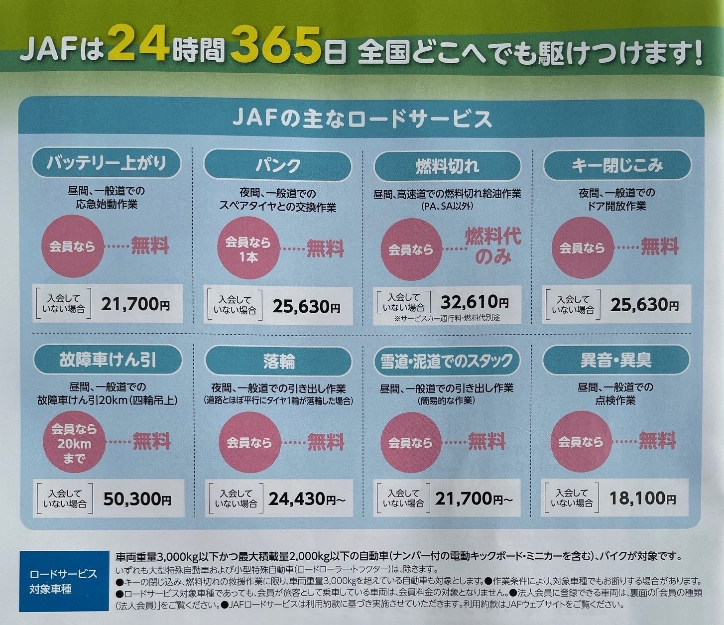 JAFの主なロードサービスはこちらになります🚗