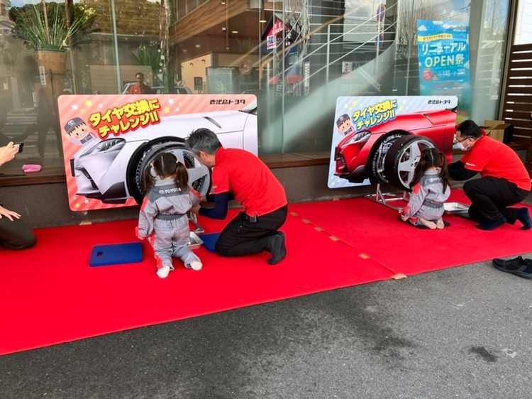 子供たちにタイヤ交換の体験や、